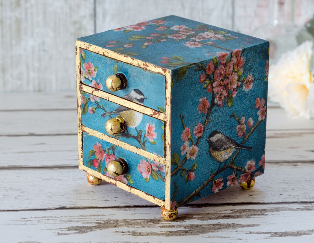 Il découpage è una tecnica decorativa intramontabile che permette di trasformare oggetti comuni in vere e proprie opere d’arte. Il termine deriva dal francese découper (ritagliare) e consiste nell’applicare ritagli di carta, illustrazioni o stampe su diverse superfici, rifinendo il tutto con una laccatura trasparente.