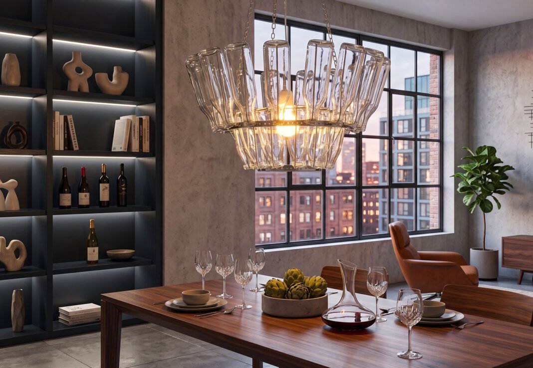 Oltre al risparmio economico, costruire un lampadario con bottiglie di vetro è un atto di upcycling che riduce gli sprechi. Il risultato è un pezzo unico, capace di arredare con stile e di creare un’atmosfera intima e accogliente grazie ai riflessi naturali del vetro.