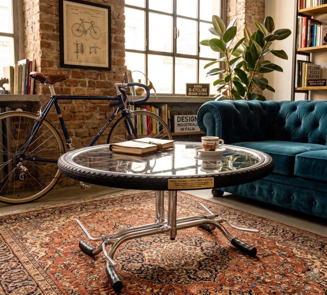 Un esempio perfetto è la realizzazione di un tavolino da caffè unico, costruito interamente con componenti di recupero di vecchie biciclette. Ecco come i dettagli meccanici possono diventare elementi d’arredo raffinati.
